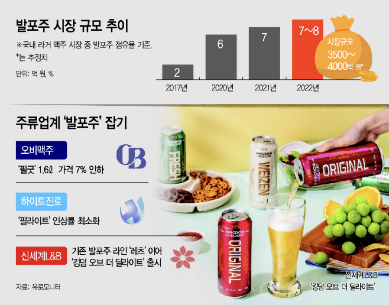 OB、HiteJinro、SHINSEGAE新世界在日益增长的起泡酒市场展开竞争